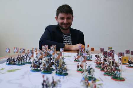 – Először eldöntöttük, melyik az a történelmi vagy diplomáciai konfliktus, amelyről annyit tudunk az 1700-as évek utáni időszakból, hogy azon egy játékmechanizmust is képesek vagyunk alkalmazni. Ami fennmaradt a rostán, azt a 7 konfliktust szétosztottuk egymás között és kidolgoztuk a játékokat – mondta Szabó Levente, aki makettkészítő gyakorlatát hasznosítva elkészítette a csatajelenetek figuráit, köztük Napóleont és Wellingtont is. – A waterlooi csatáról sokan hallottak, de történész doktoranduszként is alaposan utána kellett néznem a részleteknek. Például annak, hogy melyik egységben hány ezer személy harcolt, mekkora veszteséget szenvedtek. A külső körülményekre, köztük a korabeli időjárási viszonyokra is figyelni kellett. Itt a nagy politikai döntéshozók szemszögéből játszunk, akár másfél órán át is – saccolt a játékmester. – A spanyol polgárháborút feldolgozva is utána kellett néznem a helyszíneknek: hol mi történt, s ezek milyen hatást gyakoroltak például a pártokra. Az afrikai kolonizációnál más volt a sorrend: kitaláltunk egy koncepciót, ami működött Afrika felosztásának a szimulálásra is – ismertette saját feladatait Szabó Levente.