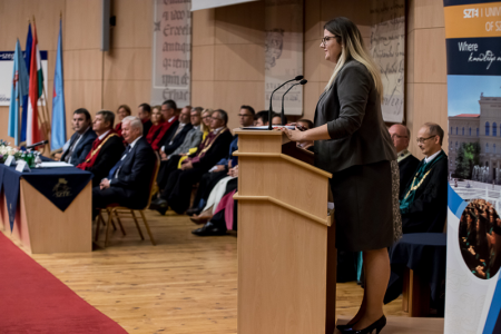 – Nagy örömmel tölt el, hogy a 2016-os adatokhoz képest megdupláztuk a duális képzésben részt vevő hallgatók számát – fogalmazott a rektor. – Az új tanévben az SZTE – a munkaerőpiaci igényekre reagálva – ötven partnerrel összefogva indított duális képzést. A munkaerőpiaci elhelyezkedést több gyakornoki program is támogatja a Karrier Iroda és az Alma Mater projektjei révén. Tízezres létszámú Alumni közösségünk is évről-évre gyarapszik. A Diplomás Pályakövetési Rendszer adatai is alátámasztják: az itt szerzett diplomának igen komoly értéke és súlya van a hazai munkaerőpiacon. Felméréseink szerint a nálunk tanultak közel száz százaléka egy éven belül talál a végzettségének megfelelő állást. Egyetemünk sikerinek egyik kulcsa az intézmény nemzetközi jellegének, kapcsolatrendszerének folyamatos fejlesztése – tette hozzá.