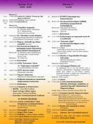 Így március 25-27-ig színes programok várják az universitas polgárait és minden fiatalt, akik érdeklődnek a kultúra, a média, a menedzsment és a felnőttképzés iránt. Míg a magyar zeneipari oktatás helyzetét többek között Beck Zoltán ismerteti, addig roma művészekkel beszélgethetnek a résztvevők, vagy épp az élőkönyvtár „szolgáltatásait” élvezhetik. A hallgatók tudományos munkáikat is bemutatják a Szilléri sugárúti épületben, s egyúttal az érdeklődők megismerhetik a Nagyító Közalapítványt vagy az SZTE Karrier Irodáját. Azonban a külföldi tanulmányi vagy az andragógiaképzés rejtette lehetőségekről is esik szó a konferencián.
