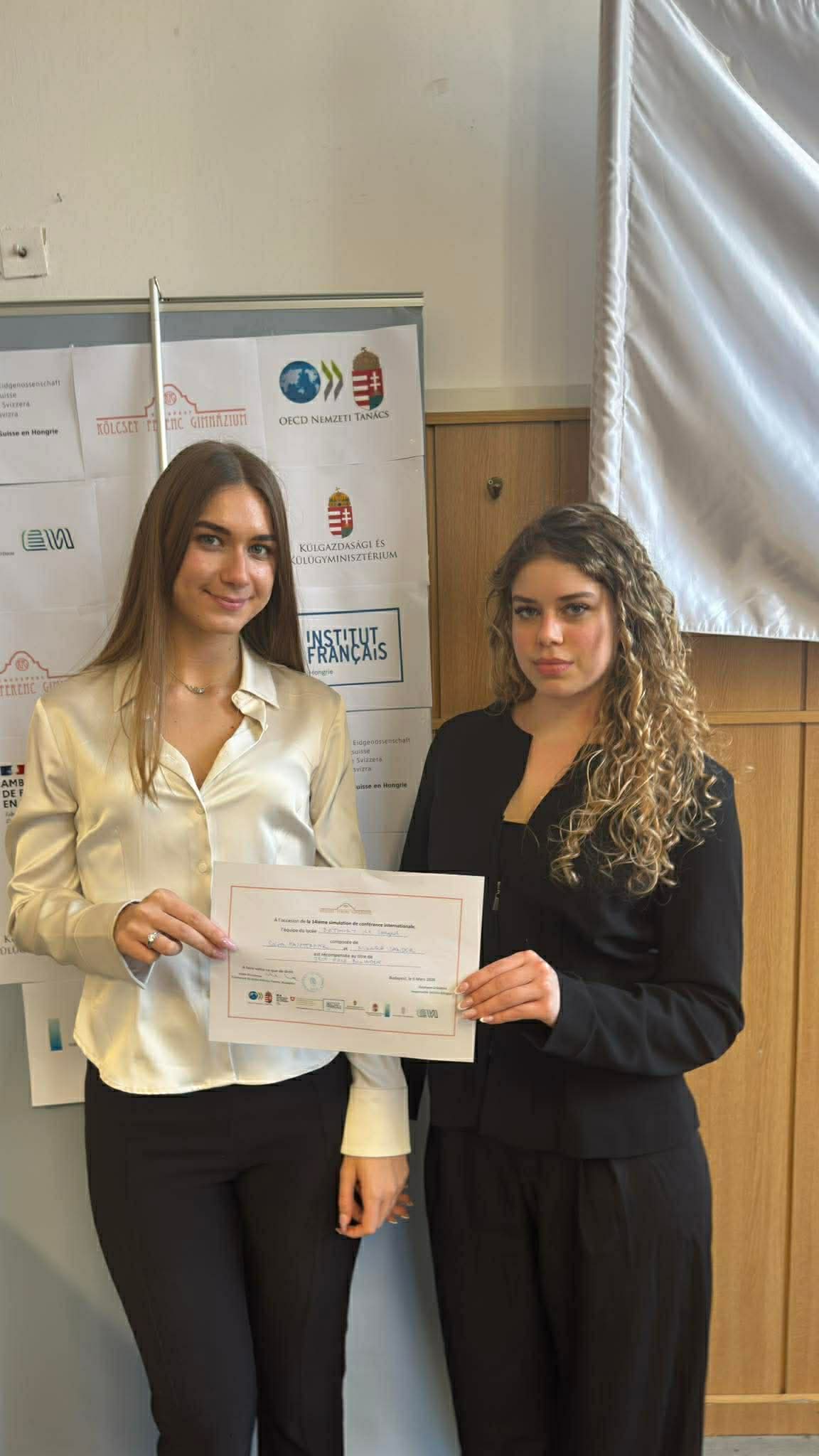 A budapesti Kölcsey Ferenc Gimnáziumban megrendezett francia nyelvű „Nemzetközi Konferencia Szimuláció” versenyen a 11. f csapata (Paszternák Sára és Sándor Nikolett, felkészítő tanárok: Kéwin Chauveau, Filó Réka, Ruzsáli Zsolt) 3. helyezést ért el. A versenyt a frankofónia hónapja alkalmából szervezték, idén 14. alkalommal.