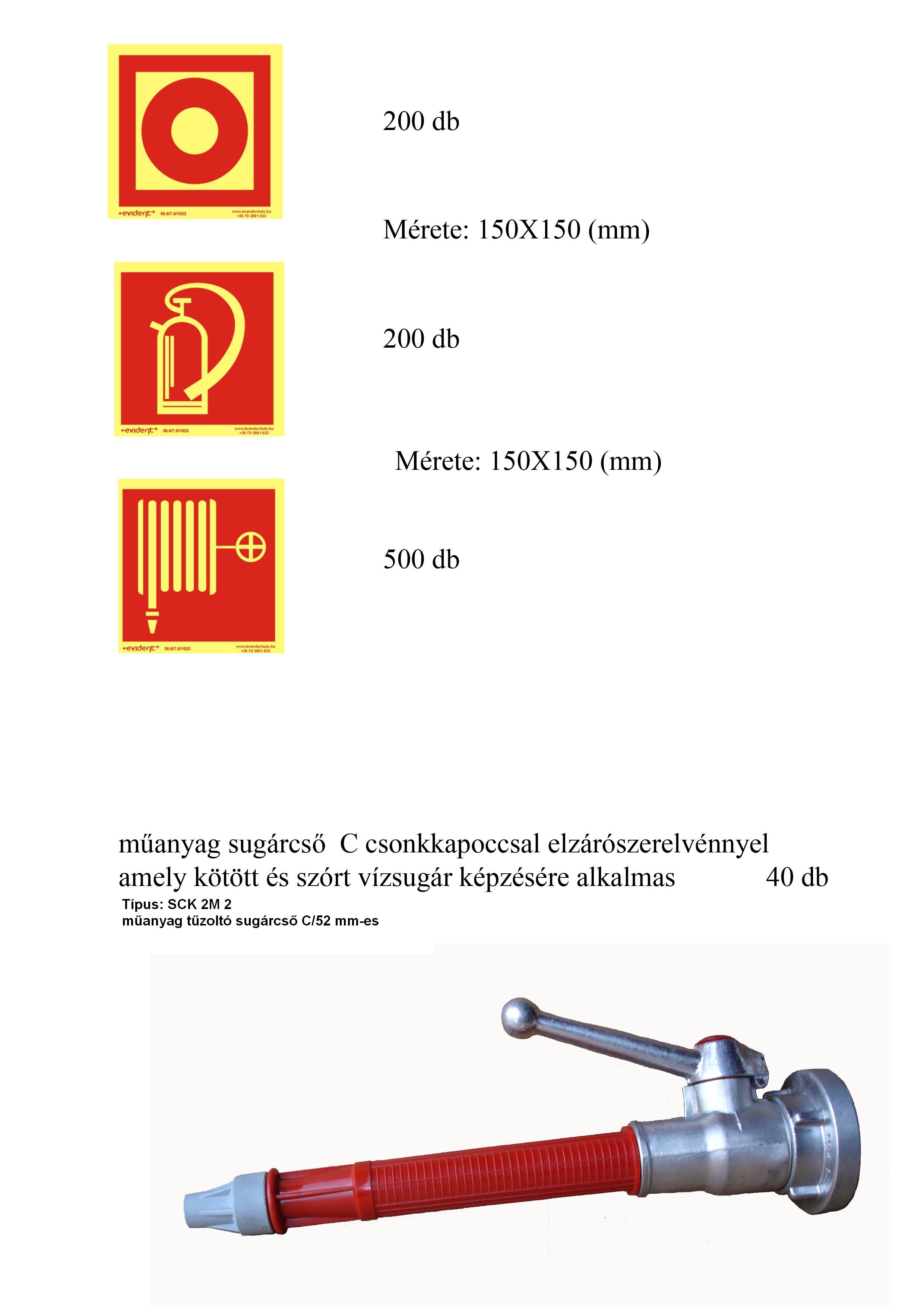 - részajánlati kör: Tűzoltó sugárcső C/52 mm-es (műanyag és alumínium), típus: SCK 2M 2 műanyag