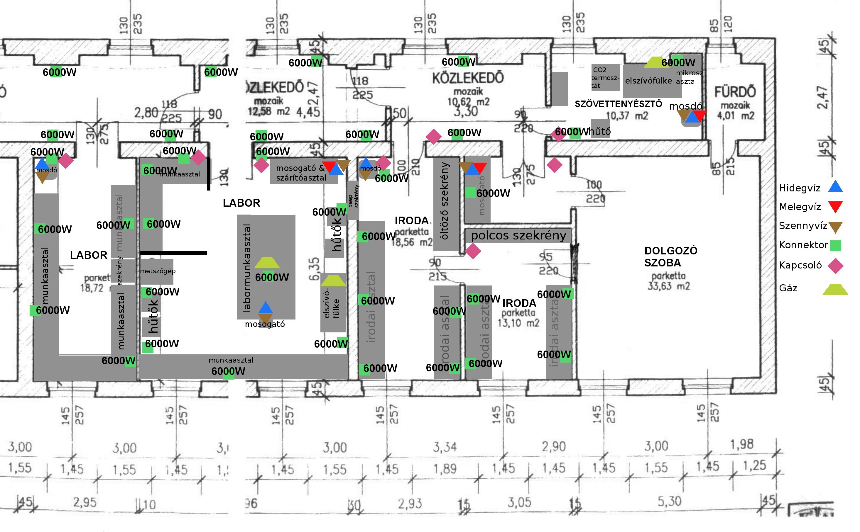Az átalakítással érintett termek elektromos hálózatának kiépítését szükség szerinti felújítását a jelenleg érvényben lévő rendeletek, és jogszabályok szerint kell tervezni.