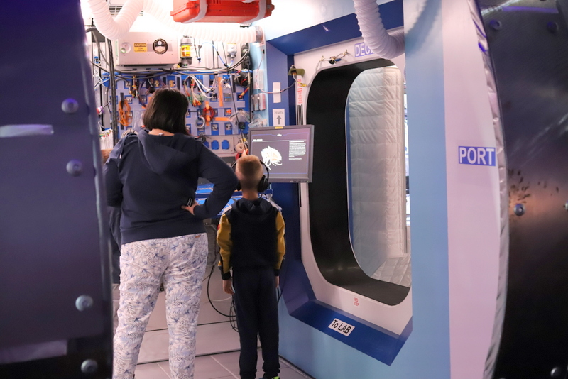 Hogyan néz ki a Nemzetközi Űrállomás? Ezt is megfigyelhetjük az élethű maketten, majd beléphetünk a fedélzetre. Itt betekintést nyerhetünk az asztronauták hétköznapjaiba. Hogyan és mit étkeznek? Erről is érdekes filmeket láthatunk. Kiderült, hogy a tortilla nagyon közkedvelt az űrhajósok között, hiszen nem morzsálódik. Kapu Tibor egyébként ételízesítőket és a Stühmer cég új fejlesztésű űrcsokoládéját vitte magával és megkínálta belőle a legénység tagjait is.