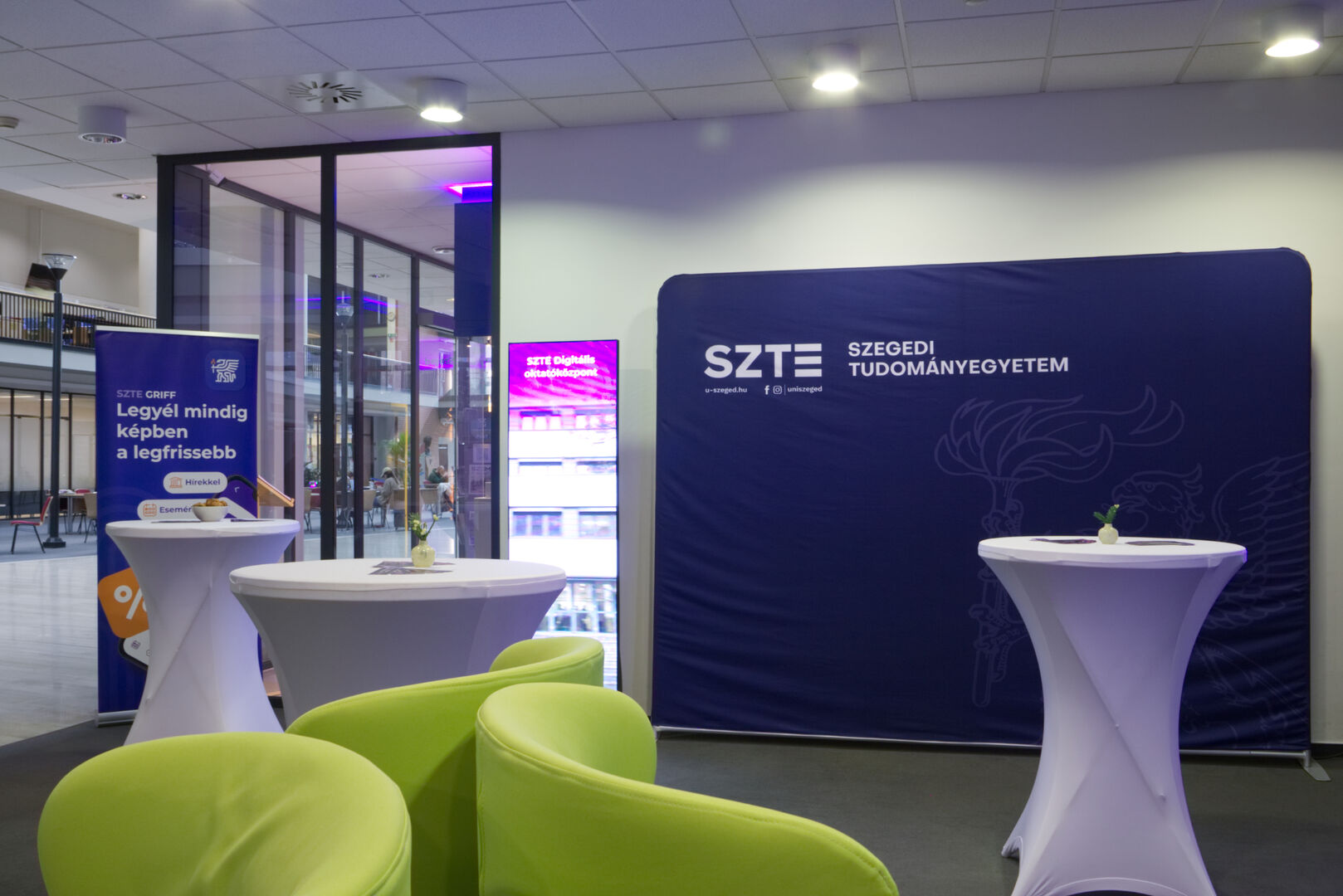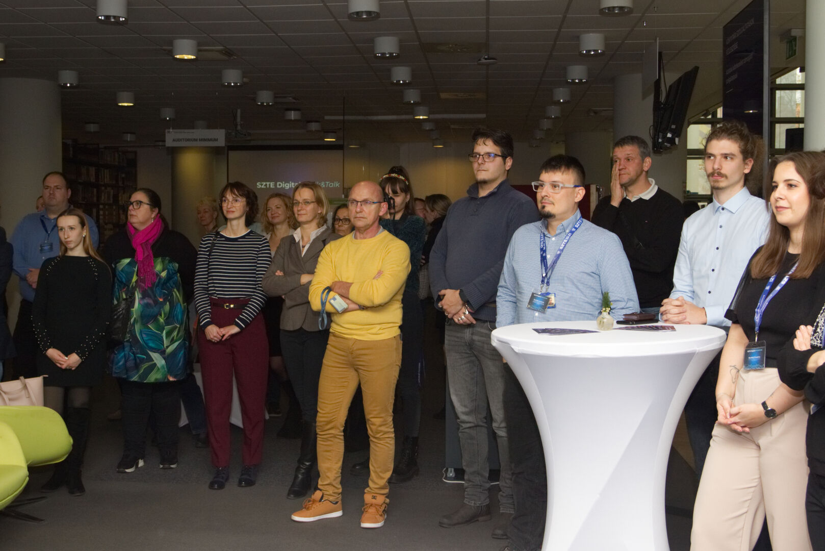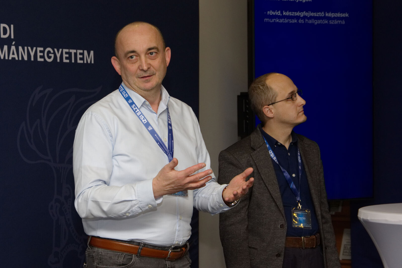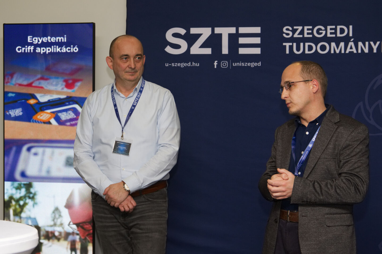 A Komplex digitális modellváltás – intelligens fokozatváltás projekt digitális fejlesztésekért felelős alprojektjének vezetője, Fekete Csaba, informatikai és szolgáltatási igazgató, valamint a projektben zajló könyvtárinformatikai fejlesztések felelőse, Dr. Nagy Gyula, a Klebelsberg Könyvtár és Levéltár főigazgatója közös eseményre invitálták az egyetem vezetőit és a projekt megvalósulását támogató munkatársakat decemberben. A programon digitális kijelzőkön és ledposztereken futó információs anyagok formájában, digitális kiállítással mutatták be az elmúlt időszak fejlesztéseit, amelyen a résztvevők a kiállítás megtekintése közben az egyes fejlesztési területek felelőseit kérdezhették kötetlen beszélgetések formájában.