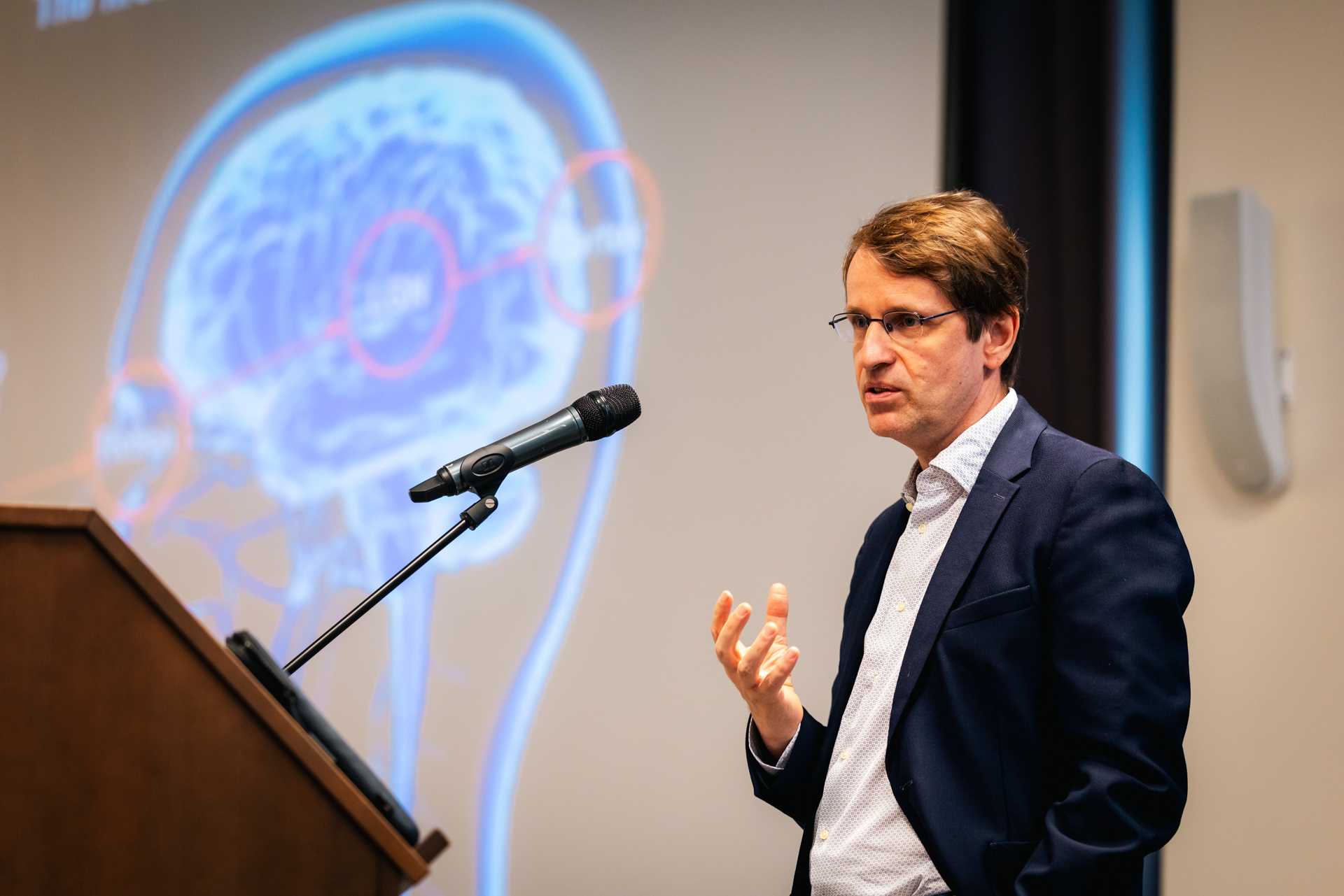 Feature photo: Botond Roska, Wolf Prize-winning researcher from the Institute of Molecular and Clinical Ophthalmology Basel, giving a lecture at the Szeged conference on September 2, 2025.
