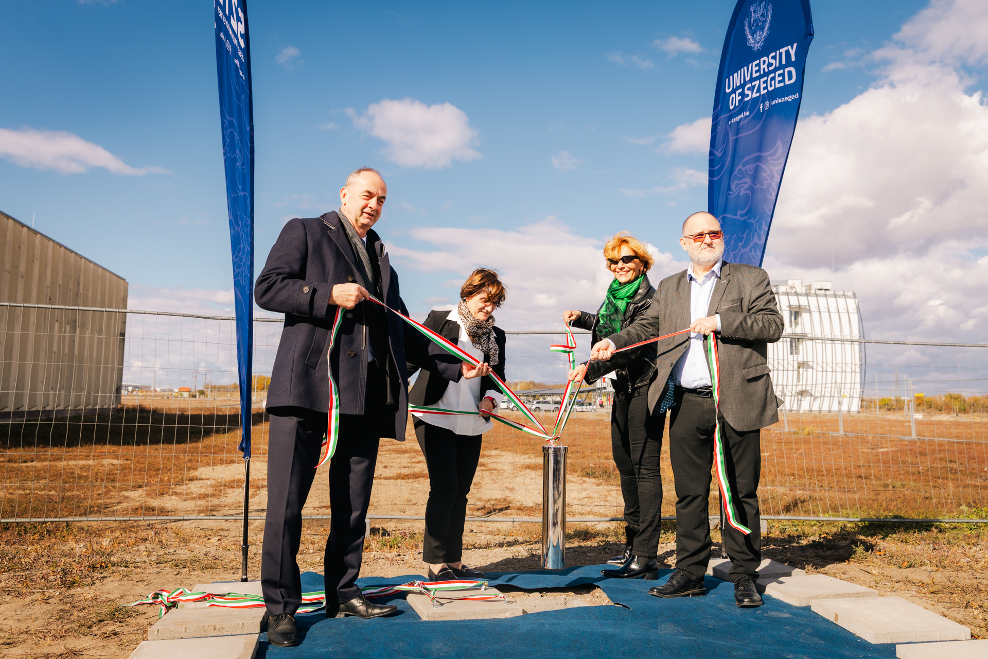 Feature photo: Ferenc Bodrogi, Managing Director of the construction company Bodrogi Bau Kft.; Prof. Dr. Ildikó Csóka, Director-General for Strategy and Development at the University of Szeged; Dr. Judit Fendler, Chancellor of the University of Szeged; and Prof. Dr. Zoltán Kónya, Vice-Rector for Scientific Affairs and Innovation, taking part in the time capsule ceremony for the SZTE Sustainable Mobility Industrial Relations Center.