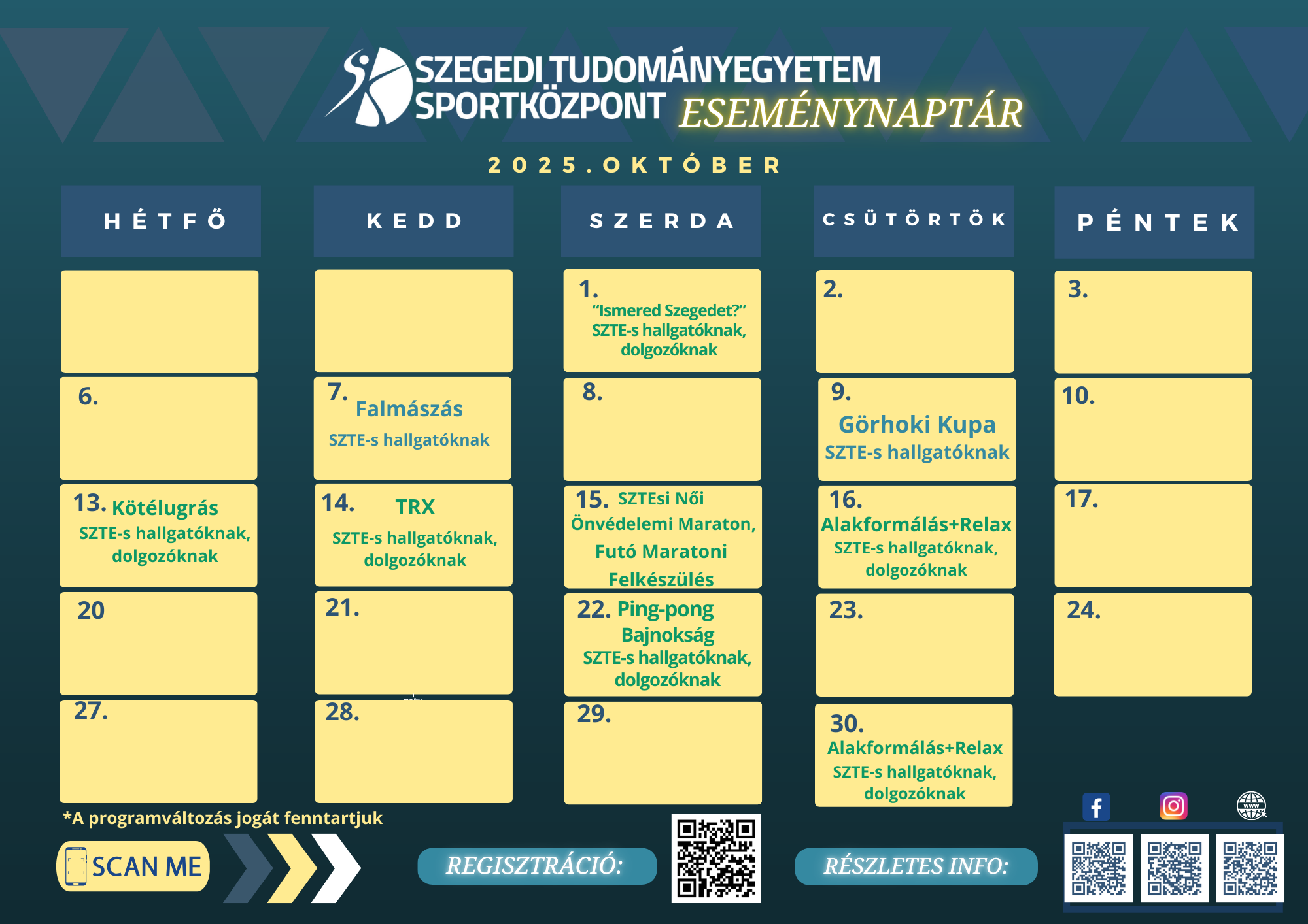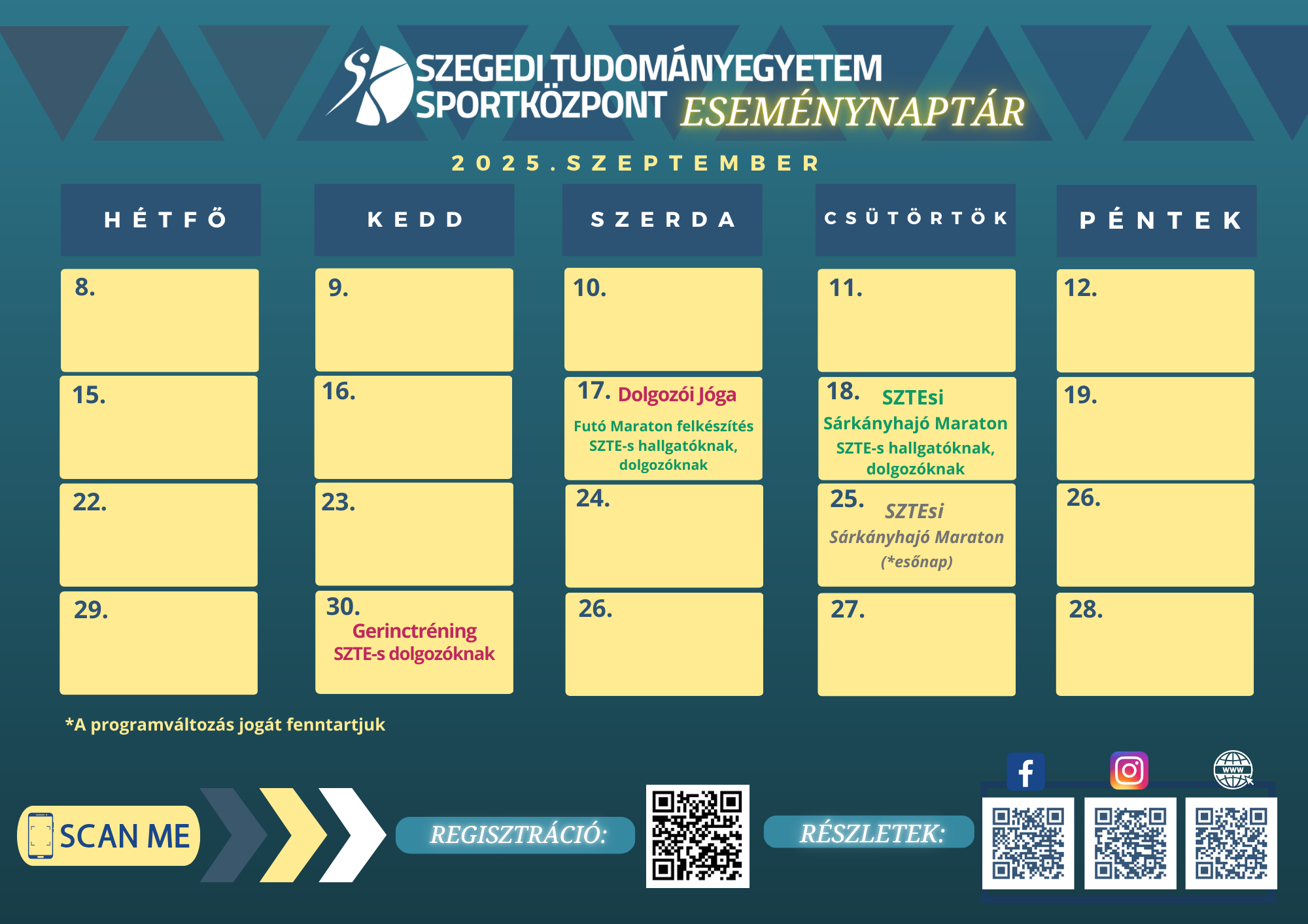 Regisztráció: A programokon való részvétel díjtalan, de előzetes jelentkezéshez kötött: szte-sportkozpont.reservio.com/