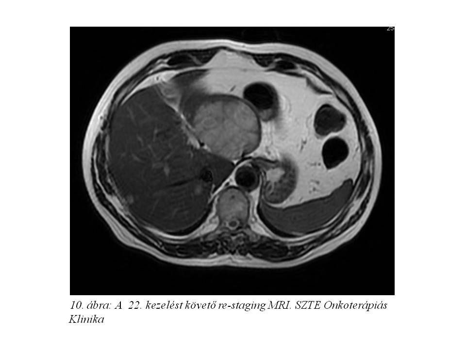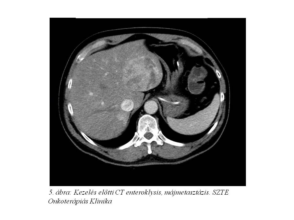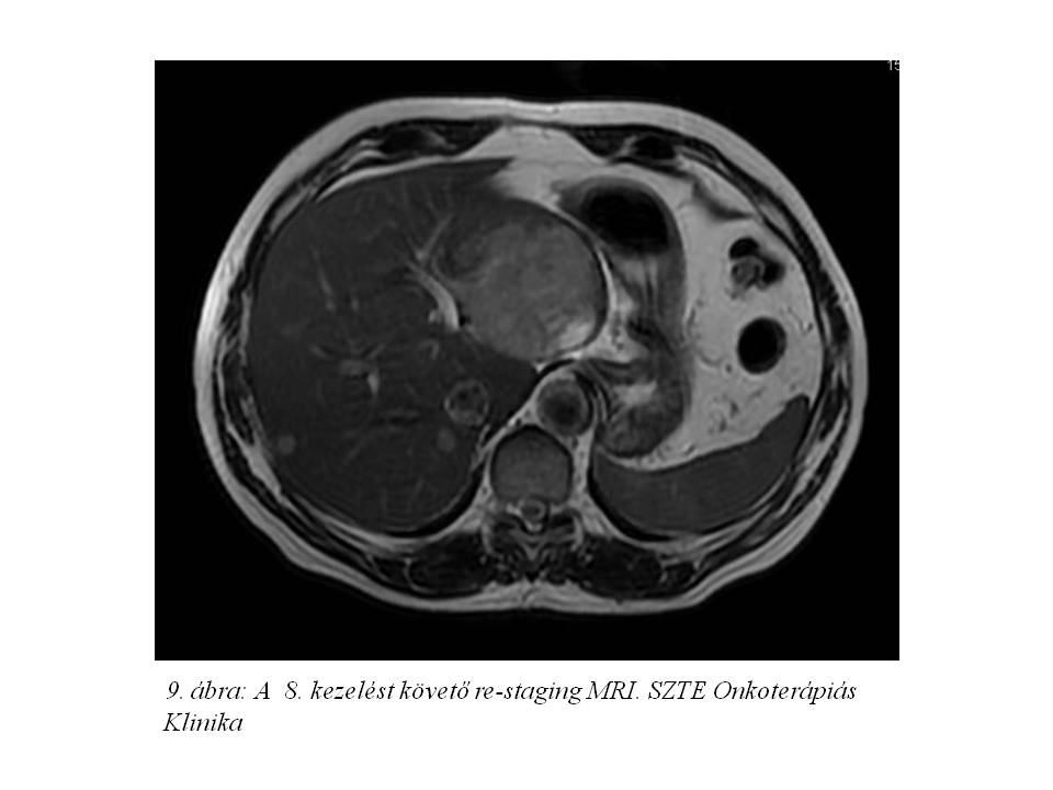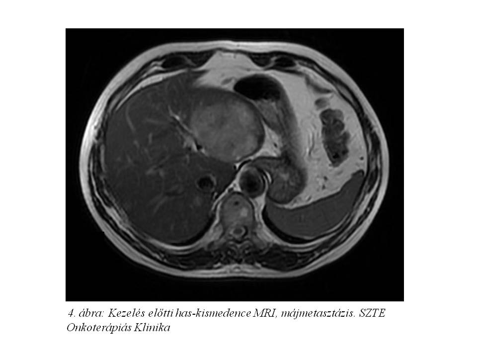 A következő hónapokban a beteg alternatív terápiát választott, illetve a májtumor sebészeti ellátását szerette volna, azonban a disszeminált hepatikus folyamat miatt primer opus nem jött szóba.