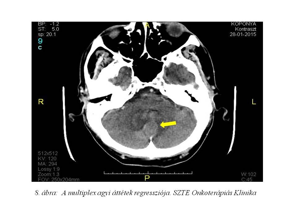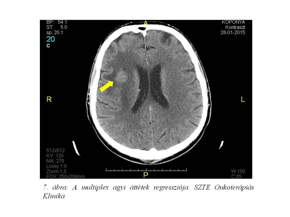 Mindeközben a betegnél novum tünetek nem jelentkeztek, klinikailag az agyi áttétek nem mutattak progressziót.