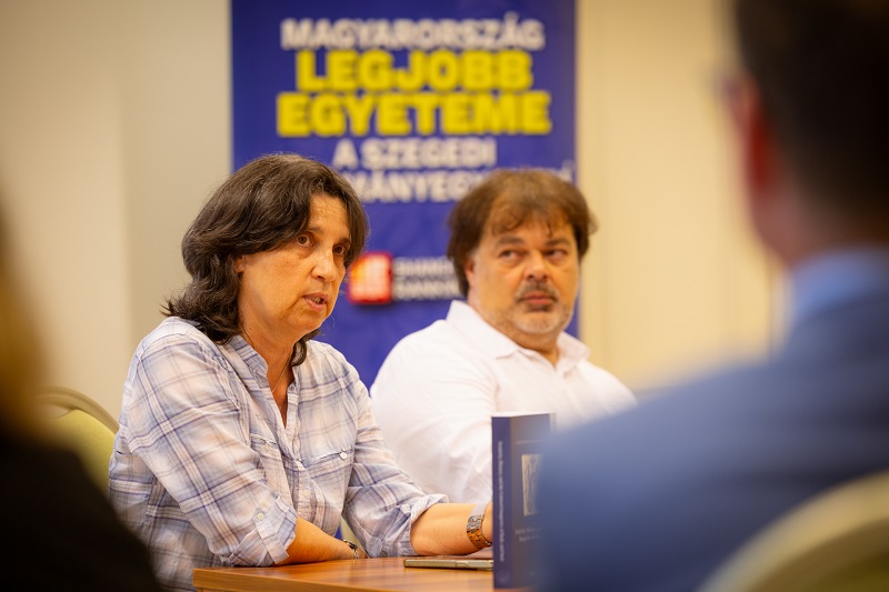 Az SZTE Bölcsészet- és Társadalomtudományi Karának két professzora, Dr. Sándor Klára és Dr. Gyenge Zoltán mutatta be a Szeged University Press kiadót. Fotó: Kovács-Jerney Ádám