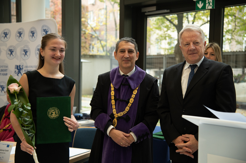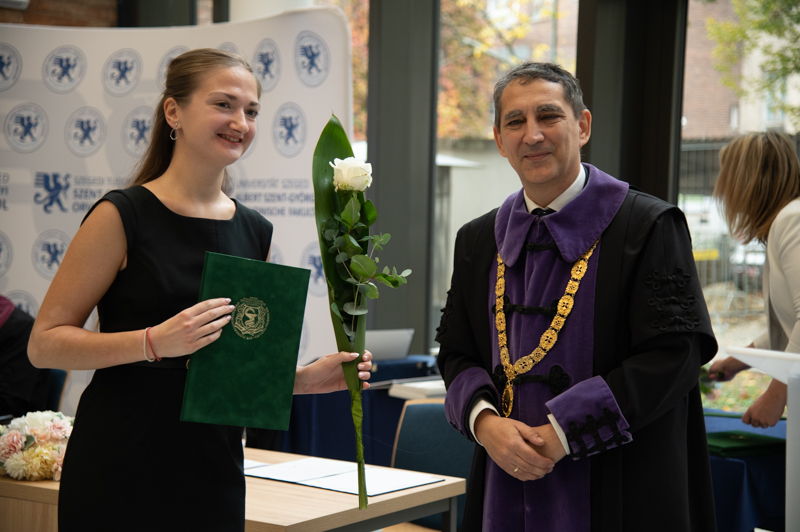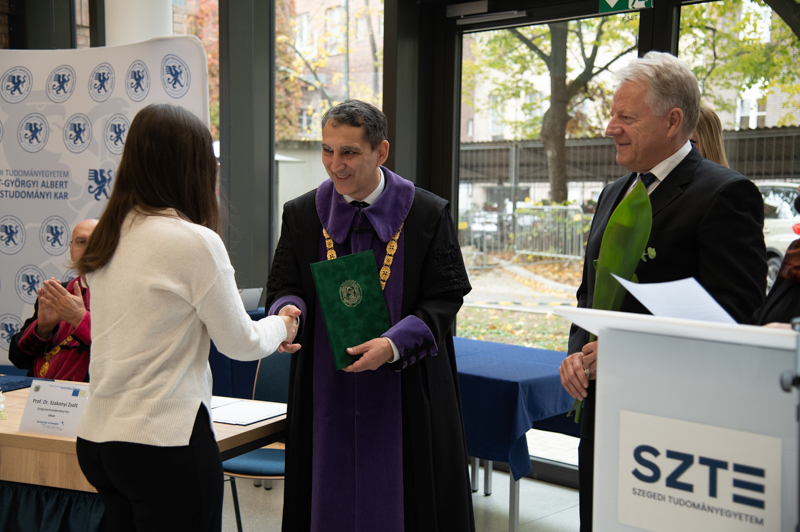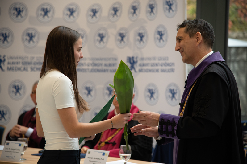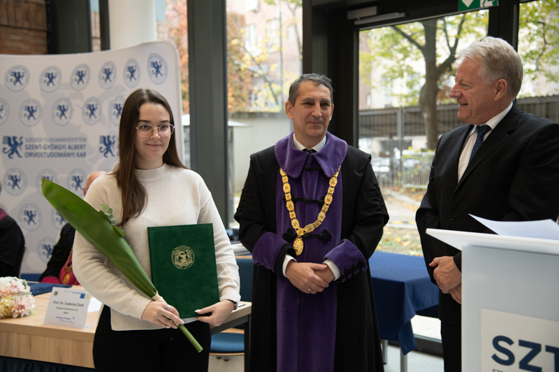 Prof. Dr. Szakonyi Zsolt átadta a Gyógyszerésztudományi Kar elismeréseit. Nemzeti Felsőoktatási Ösztöndíjban részesült Ádám Gréta, Gőz Júlia Kincső, Jáger Tekla és Piszman Zsófia Ilona hallgató. Majd a GYTK dékánja és Dr. Barcsay István címzetes egyetemi docens, a Szegedi Gyógyszerészképzés Fejlesztéséért Alapítvány kuratóriumi tagja és a Phoenix Pharma Zrt. Felügyelő Bizottságának elnöke együtt nyújtotta át a Szegedi Gyógyszerészképzés Fejlesztéséért Alapítvány díjait. Kedvessy György-pályadíjat nyert el hallgatói kategóriában Jáger Tekla IV. éves gyógyszerészhallgató és doktorandusz kategóriában Dr. Deák Martin PhD-hallgató. A Novák István hallgatói pályadíjat Dr. Kele András kapta. Dr. Bocz Csenge, a kar volt ötödéves gyógyszerészhallgatója, az országos „Év Gyógyszerészhallgatója” verseny második helyezettje az alapítvány különdíjában részesült. Az „Év Szakkollégistája” díjat Szabó Zsuzsanna hallgató nyert el.