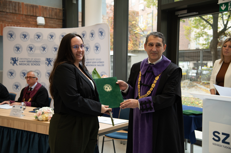 – Mint ismert, karunkon három nyelven folyik az orvosképzés, állami ösztöndíjas képzésre 414 ponttal lehetett bekerülni, amely a vidéki orvosképző karok között ismét a legmagasabb pontszám. Ebben az évben 271 fő elsőéves orvostanhallgató iratkozott be a magyar nyelvű képzésre, 250 fő az angol nyelvű és 80 fő a német nyelvű képzési programban kezdte meg tanulmányait. Orvosi diplomát a 2024/2025-ös tanévben a magyar nyelvű képzésen 177-en, az angol nyelvű képzésen 64-en vehettek át. Négy doktori iskolában összesen 81 fő jelentkezett PhD-képzésre és 2025-ben 51 főnek ítélték oda a PhD-fokozatot, és feltételezhetően hamarosan 9 fő veszi át a habilitációs oklevelet is – sorolta Prof. Dr. Lázár György. Megemlítette, hogy az SZTE idén is a világ legjobb egyetemei közé került a nemzetközi és hazai rangsorokban. A HVG összetett képzési rangsorában az ország összes kara közül a SZAOK országosan a harmadik legjobb helyezést érte el.