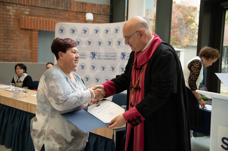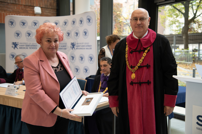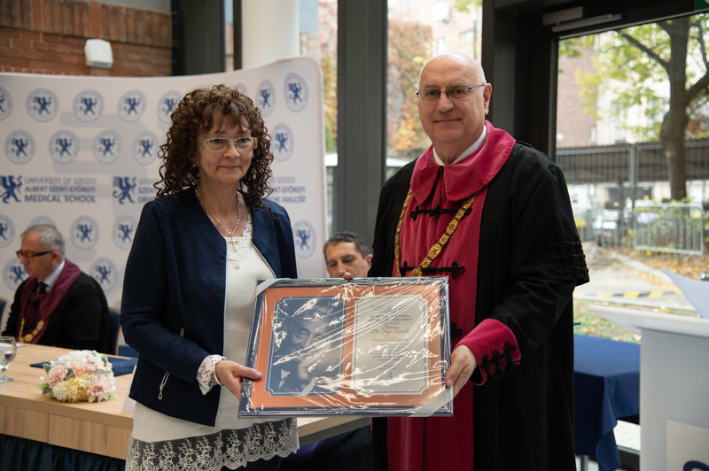 A Szent-Györgyi Albert Klinikai Központ Klinikai Központ emlékérmet adományozott a következő, nyugdíjkorhatárt elért munkatársainak: Dr. Báló Mária, Dr. Kiss Katalin Zsuzsanna, Dr. Szabó Mária, Pappné Palócz Katalin Jolán, Bíróné Dr. Pepó Judit, Dr. Madléna Melinda Ilona és Prof. Dr. Dr. Piffkó József. Címzetes Főorvosi cím emléklapot vehetett át Dr. Borbély Judit Mária gyermek háziorvos; Dr. Bozó Szilvia fogorvos; Dr. Fridrik Pál felnőtt- és gyermek háziorvos; Dr. Gyalay Mónika felnőtt háziorvos; Dr. Gyetvai Csaba felnőtt háziorvos; Dr. Kovács Enikő Éva felnőtt háziorvos; Dr. Kovács Éva gyermek háziorvos; Dr. Marik Anikó gyermek háziorvos; Dr. Mikó Attila felnőtt háziorvos; Dr. Nagy Erika Márta fogorvos; Dr. Rácz Péter felnőtt háziorvos; Dr. Szabó Éva gyermek háziorvos; Dr. Törjék Zoltán felnőtt háziorvos; Dr. Herczeg Lajos felnőtt háziorvos; Dr. Kovács Zsuzsanna Edit gyermek háziorvos; és Dr. Oláh Erzsébet felnőtt háziorvos.