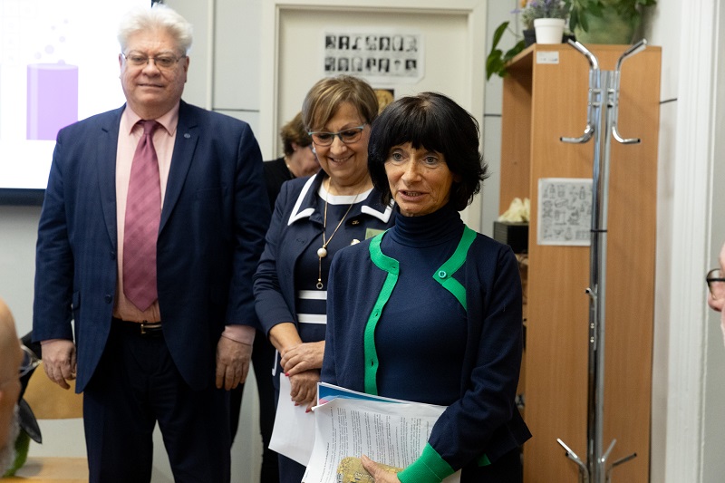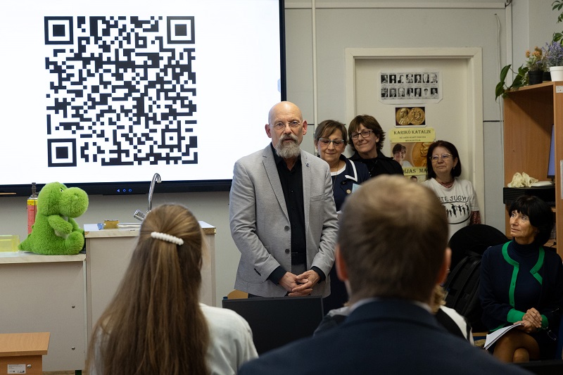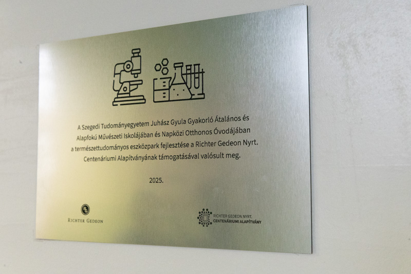 Dr. Zsigriné Dr. Sejtes Györgyi, az SZTE Juhász Gyula Gyakorló Általános és Alapfokú Művészeti Iskola igazgatója arról beszélt, hogy büszkék arra, hogy az SZTE mint fenntartó szakmai és anyagi támogatásával 2024-ben elindulhatott az első alkalmazott reáltudományi osztályuk kötelezően választható művészeti orientációval. – Dr. Szántay Csaba és kollégái voltak a „Varázsórák” első látogatói, ahol az akkori kis elsősök bájitalt készítettek és ámulattal figyelték a kémia csodáját. A szakmai beszélgetésekből egy országosan is egyedülálló együttműködés született. Olyan megállapodás, ami nem csupán formális kapcsolat, hanem inspiratív együttgondolkodás is, amely a szakmai fejlődés, a közös munka alapja. Ennek szép példája iskolánk TETT-mesekönyve is. A Richter-terem lehetőség arra, hogy a gyerekek kísérletezzenek, tapasztaljanak, kérdezzenek, és sokszor elhangozzék az a világ működésére rácsodálkozó tőmondat, hogy „Hát, ez furcsa!” Ez a terem a partnerség, az elköteleződés és a jövőbe vetett bizalom szimbóluma is – hallottuk az igazgatónőtől.
