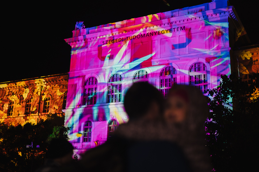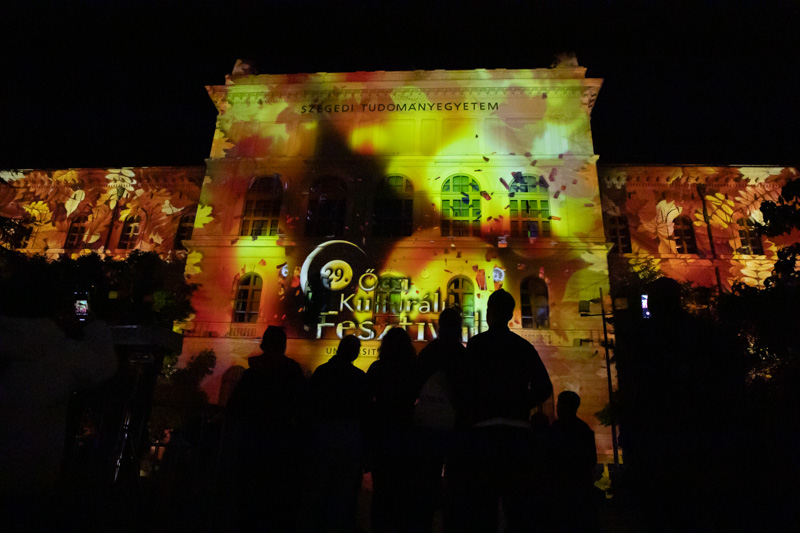 Különleges, a hűvös, őszi időben igazán lélekmelengető programokkal kezdődött október elsején a 29. Őszi Kulturális Fesztivál az SZTE NKI Kulturális Iroda szervezésében. A Szegedi Tudományegyetem Rektori Hivatalának átriumában két kiállításmegnyitóval indult a program: Patyi Zsófia, az SZTE Oktatási Igazgatóság oktatási főelőadójának színes, élettel teli néptáncfotóiból és Török János, többek között Hégető Honorka-díjas és hétszeres NaturArt-díjazott fotóriporter magával ragadó, csodálatos természetfotóiból nyílt tárlat bűvölte el a művészet szerelmeseit, majd a fesztivál nyitányának zárásaként látványos, zenés fényfestéssel fejeződött be a nap a rektori épület előtt.