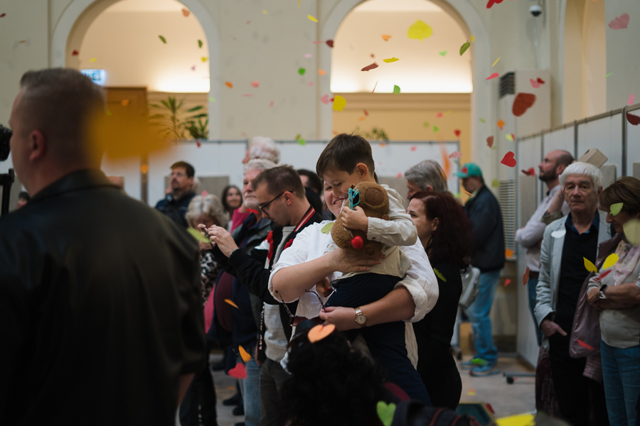 Az ünnepélyes kiállításmegnyitó egyik legizgalmasabb pillanata az volt, amikor arra kérték a látogatókat, lépjenek oda egy-egy letakart képhez, s egyszerre vegyék le róla a csomagolást. Ezt követően három fotó címét olvasták fel, s azok a szerencsések, akik éppen a megnevezett képeket fedték fel a nagyközönségnek, megkapták a szóban forgó, kiállított alkotás egy másik példányát, így ők örök emlékkel gazdagodva térhettek haza.