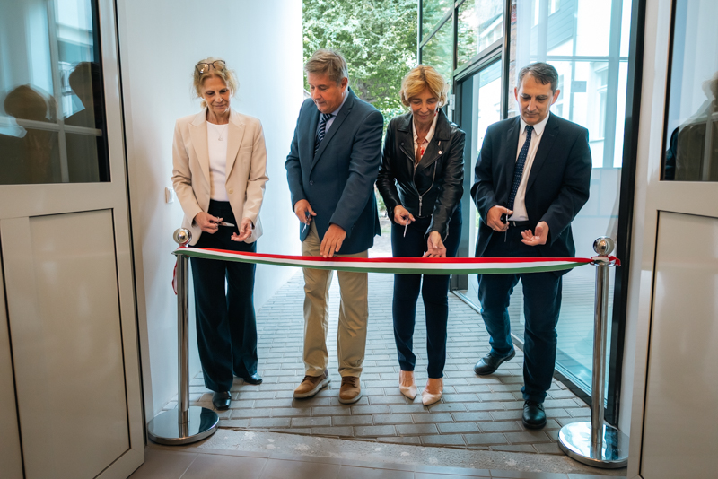 Ünnepélyes szalagátvágással kezdődött 2025. szeptember 26-án az SZTE felújított és kibővített Szentháromság utcai épületének átadása. A nemzeti színű szalagot Prof. Dr. Rovó László rektor, Dr. Fendler Judit kancellár, Prof. Dr. Dux Mária dékánhelyettes és Prof. Dr. Szakonyi Zsolt dékán vágta át, majd a vendégekkel közösen birtokba vették a vadonatúj oktatási, kutatási tereket.