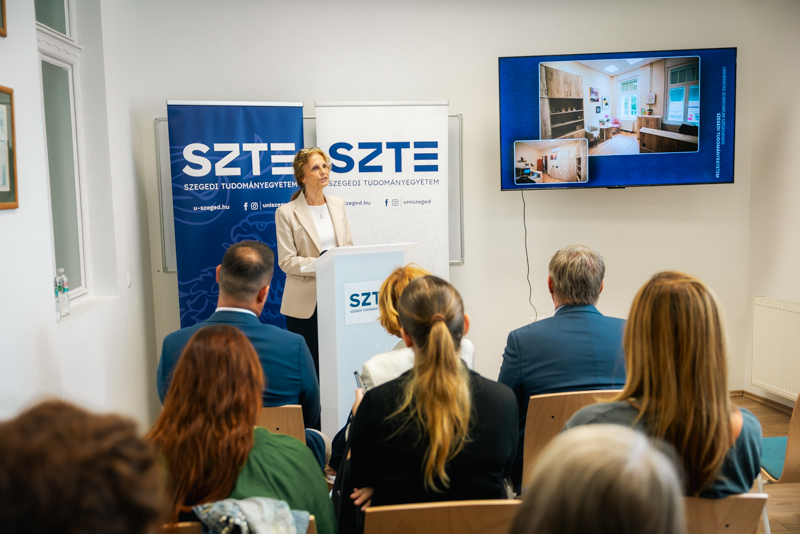 Öröm, hogy a Magatartástudományi Intézetünk visszaköltözhet ebbe a nagyon szépen felújított épületbe – kezdte köszöntőjét Prof. Dr. Dux Mária, a SZAOK általános és oktatási dékánhelyettese. A felújított több mint százéves épület nagyjából hetven éve szolgál egyetemi intézetek helyeként. – Ahogyan rektor úr említette, úgy én is még marxizmus-leninizmus intézetként ismertem meg ezt a helyet és látogattam hallgatóként. Utána több egységünk is működött itt; az Idegennyelvi Intézet, illetve a Magatartástudományi Intézet egy része, 2008 óta pedig már az önálló Magatartástudományi Intézetnek ad otthont. A megszépült környezet nem csak az itt dolgozóknak, hanem a hallgatók számára is nagyon inspiráló környezet lesz – mondta Prof. Dr. Dux Mária.