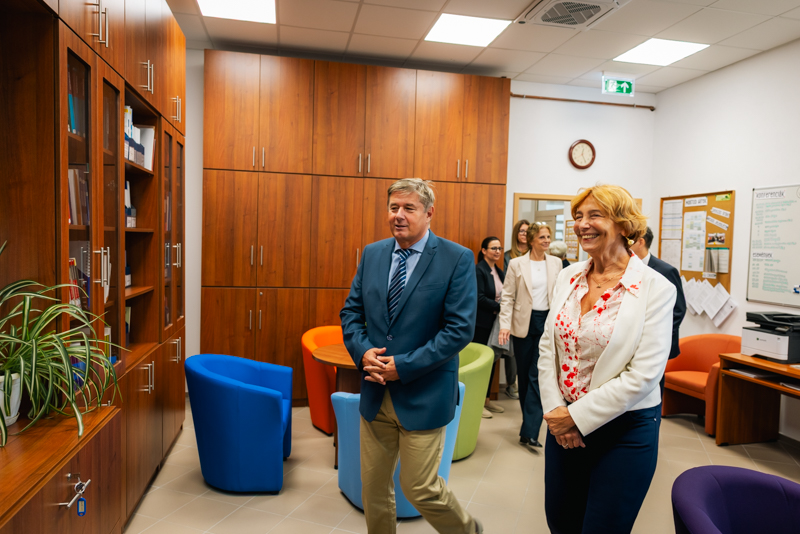 Kihívásokkal teli felújítás volt, nehéz volt megfelelő árajánlatot kapni, majd igen hosszúra nyúlt a kivitelezés – hallottuk Dr. Fendler Judittól. Az SZTE kancellárja kiemelte, hogy az 571 millió forintos beruházás nem csak felújítást és átalakítást foglalt magába, hanem bővítést is, hiszen másfélszeresére nőtt a hasznos terület (680 négyzetméterről több mint 1000-re). Nagyon fontosnak tartotta, hogy a gyógyszerészkar egyes funkciói kerülnek ebbe az épületbe. – 2018 óta majdnem minden karunkon jelentős infrastruktúra- és eszközfejlesztés valósult meg. A gyógyszerészkarnál komoly ígéreteink vannak arra, hogy az egyetem tulajdonába került MÁV-telken egy olyan komplex épületet hozunk létre, amely a GYTK tevékenységét segíti. Nem tettünk le erről az ígéretünkről. Az itt újjászületett helyiségek mind az orvosi, mind pedig a gyógyszerészkar számára új oktatási, illetve kutatástámogatási feladatok ellátására alkalmas területeket biztosítanak. Ez a beruházás jóval több, mint egy újabb ingatlanfejlesztés, ez egy szellemi központ, ami egyszerre támogatja a képzést, az együttműködéseket, az egyetem jövőjének építését – mondta Dr. Fendler Judit.
