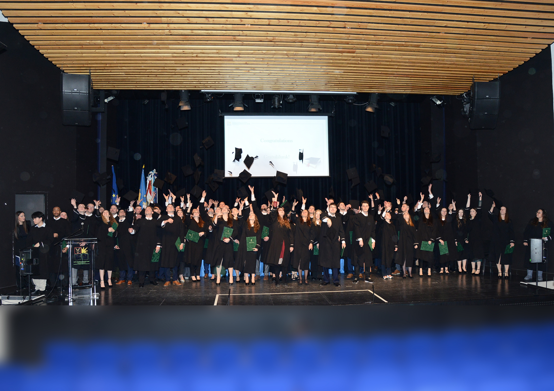 Az ünnepség végén a végzett hallgatók kalapjuk feldobásával ünnepelték diplomájuk megszerzését.
