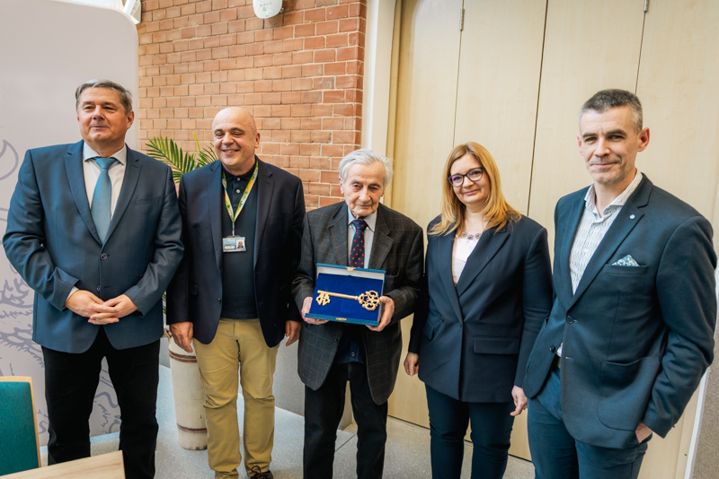 Az ünnepélyes átadó zárásaként Prof. Dr. Rovó László, Dr. Fendler Judit és Dr. Surján Orsolya átnyújtotta Prof. Dr. Bereczki Csaba részére az SZTE SZAKK Gyermekgyógyászati Klinika új Gyermek Sürgősségi Betegellátó Osztályának jelképes kulcsát.