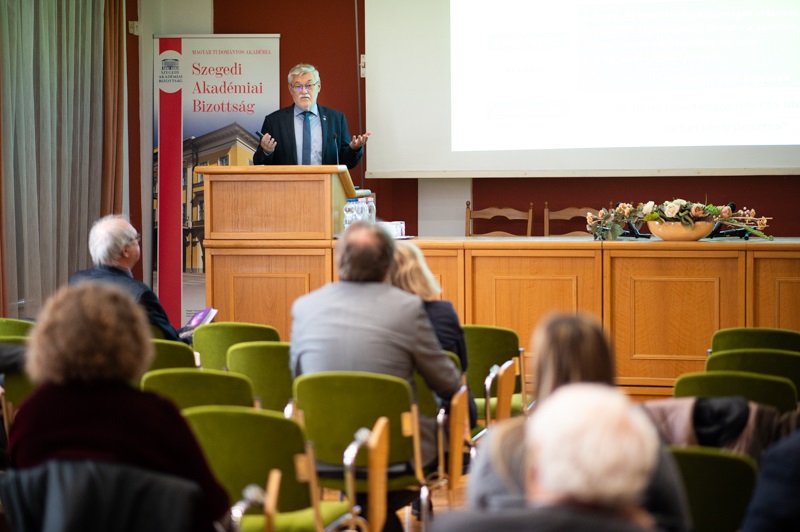 – Mit keres egy középiskolai tanár a Szegedi Akadémiai Bizottság előadói pulpitusánál? – kérdezte önmagától is Gál Béla, a JATE alumnusa, biológia-kémia szakos tanár, a szegedi Radnóti Miklós Kísérleti Gimnázium nyugalmazott igazgatója, az SZTE Junior Akadémia oktatója a SZAB 65 évét köszöntő konferencián. Az iskolai katedrán eltöltött negyven év tapasztalatát osztotta meg hallgatóságával, de hozzátette: a SZAB ernyője alatt dolgozó kutatók adhatnak igazán pontos választ arra a kérdésre, hogy: „Segíthet a tudománynak a közoktatás?”
